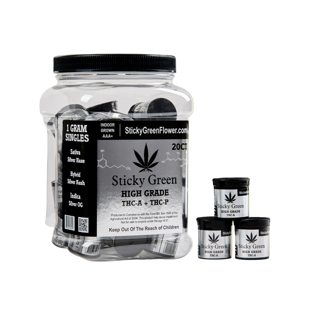 This 20-count set features 1g portions of indoor-grown AAA+ flower, each infused with a powerful THCA + THCP blend for maximum potency and flavor.